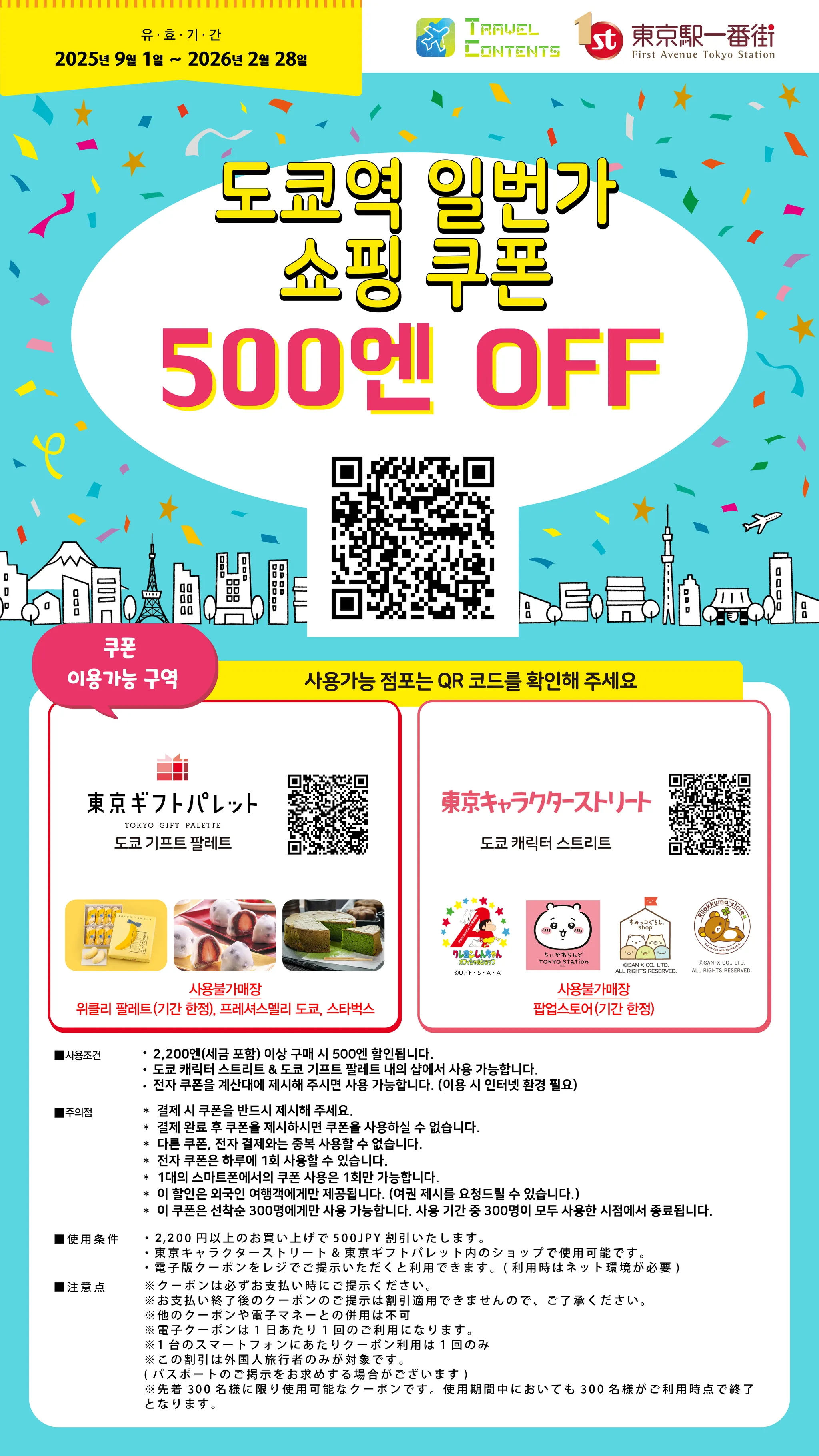 500엔 할인 및 면세 혜택을 받을 수 있으며, 선착순 소진 시 종료됩니다.
